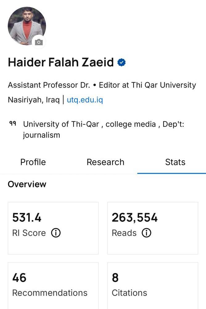سجل حساب التدريسي في كلية الإعلام – جامعة ذي قارا الاستاذ المساعدالدكتور حيدر الخفاجي