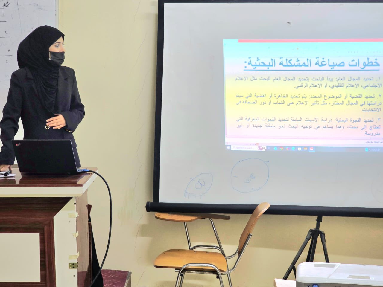 في إطار سعيه لتعزيز المهارات البحثية لدى طلبة الإعلام أقام قسم الإعلام الرقمي بالتعاون مع وحدة التعليم المستمر ورشة عمل بعنوان “حيثيات البحث الإعلامي: اختيار عنوان البحث وهيكلية البحث العلمي” قدّمتها التدريسيتان م.م نور اختياري وم.م. رحاب جواد.